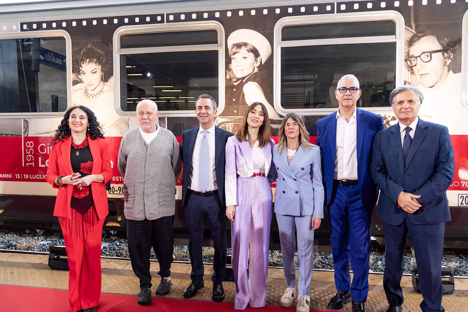 Il treno “Un film lungo 70 anni”, è stato presentato al binario 25 della stazione di Roma Termini alla presenza del Presidente di Trenitalia, Stefano Cuzzilla; del Direttore Business Intercity, Domenico Scida; del Commissario Straordinario Fondazione Taormina Arte Sicilia, Sergio Bonomo; dell’Assessore del Turismo, Sport e Spettacolo della Regione Siciliana, Elvira Amata, e di Chiara Francini, attrice, scrittrice e produttrice.