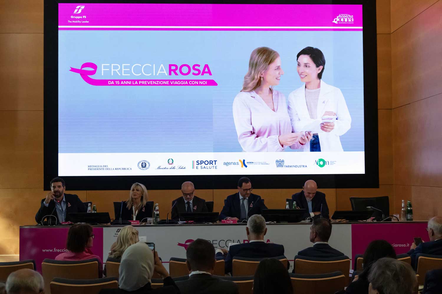 «FrecciaRosa è la testimonianza concreta dell’impegno del Gruppo FS per la salute e il benessere delle persone» ha dichiarato Tommaso Tanzilli, Presidente del Gruppo FS Italiane nel corso della presentazione dell'iniziativa tenutasi nella sede centrale di FS. «La collaborazione con Fondazione IncontraDonna, AIOM e con tutte le Istituzioni coinvolte dimostra quanto sia fondamentale creare sinergie quando si affrontano temi così rilevanti per la collettività. In quindici anni - ha sottolineato Tanzilli - FrecciaRosa è diventata un punto di riferimento a livello nazionale per la prevenzione oncologica, raggiungendo milioni di viaggiatori e trasformando il treno e le stazioni in spazi di informazione, dialogo e sensibilizzazione».