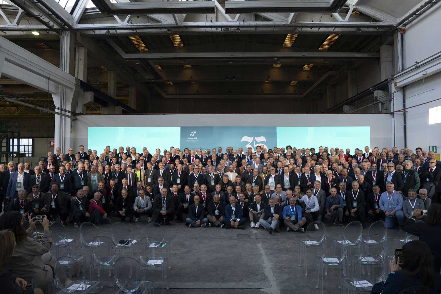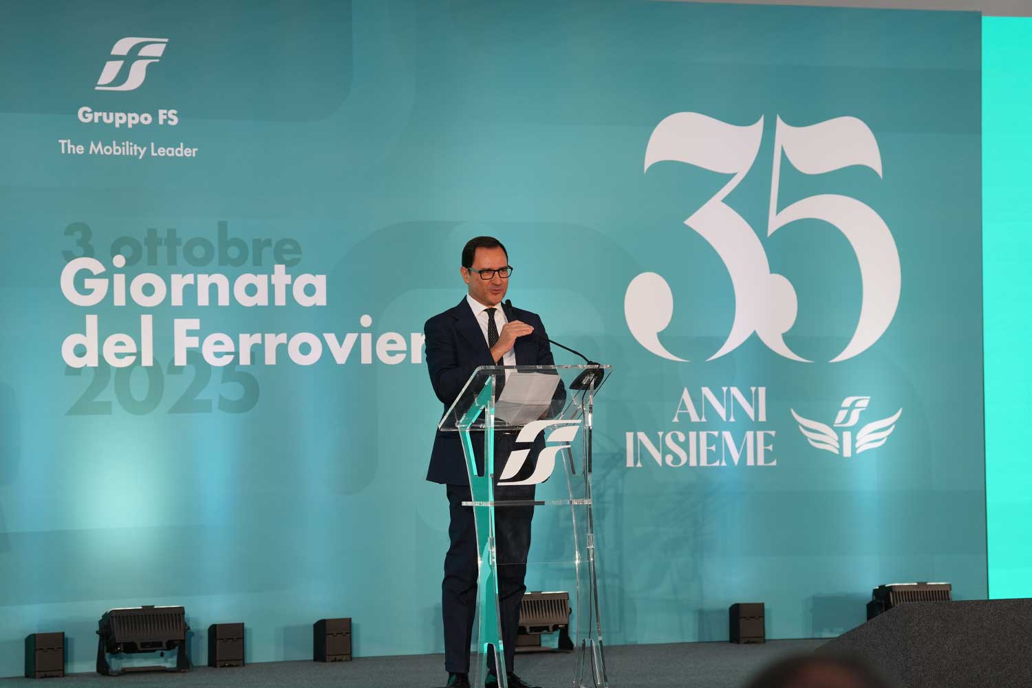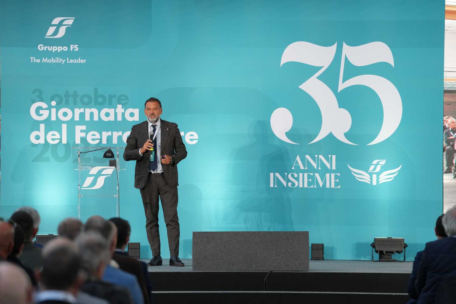 Dopo l'AD, ha preso parola Gian Luca Orefice, Chief People, Culture & Transformation Officer di FS, con un intervento focalizzato sull’importanza del tramandare: «Rispetto a quando siete entrati, era il 1990, avete vissuto un’epoca di grande cambiamento, anzi siete stati voi tra i protagonisti di questo cambiamento, portando avanti con determinazione ed eccellenza il vostro lavoro. Non sempre però al di fuori si vede tutto quello che facciamo, siamo di ferro ma anche di tecnologie e di ciò che ci porta al futuro. In questi 120 anni, si sono succedute 4/5 generazioni. Anche qua oggi, ci siete voi con 35 anni di servizio e anche giovani colleghe e colleghi neoassunti. Questa è una bella testimonianza di passaggio di testimone in una staffetta generazionale per trasferire conoscenze e competenze. Allo stesso modo è importante saper ascoltare le storie per continuare a innovare, rinnovare e trasmettere valori fondanti per essere sempre al servizio del Paese. La nostra forza, infatti, sta nel prenderci cura degli altri e nello stare insieme, una felicità che si trova anche e soprattutto nel modo di stare e lavorare insieme. Voglio dirvi ancora grazie. Grazie a voi, che potete raccontare che la determinazione porta al successo».