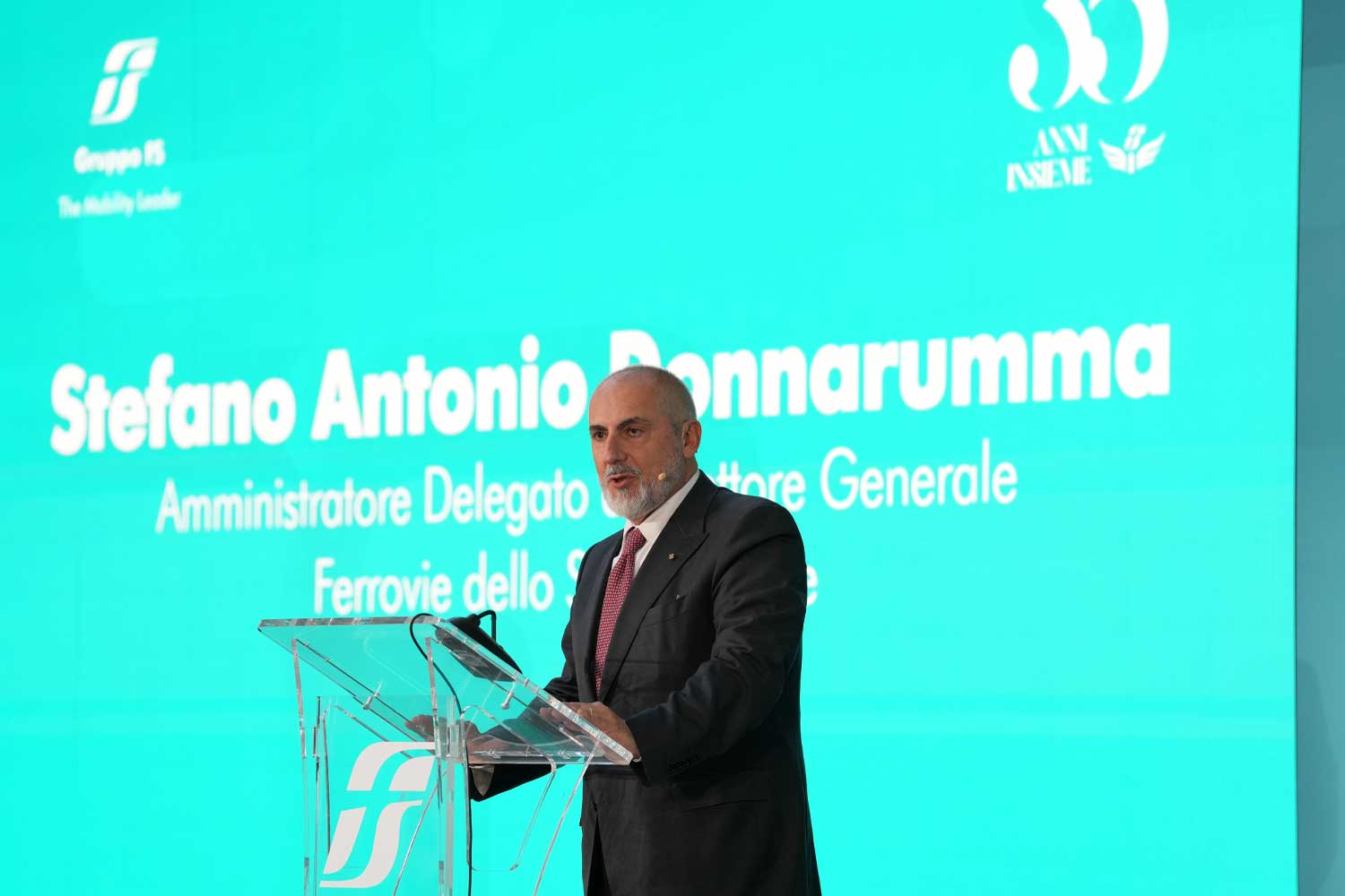 Dopo i saluti del Presidente, è stata la volta di Stefano Antonio Donnarumma, Amministratore Delegato di FS Italiane: «Non è facile trovare oggi aziende, come la nostra, che durano tanti anni, non è facile trovare persone, come voi, che spendono l'intera vita professionale in un'azienda, che negli anni è diventata la vostra casa. In particolare, tra i ferrovieri c'è un forte spirito di appartenenza, lo recita anche il nostro video istituzionale: il valore di questa azienda viene creato dalle persone che, con il loro lavoro, accompagnano lo sviluppo del nostro Paese. Un accompagnamento – ha sottolineato Donnarumma – che è a metà dell'opera: stiamo lavorando alla Napoli-Bari, che avrà delle ripercussioni sull'economia come la Milano-Roma, pensiamo anche al ponte, ai valichi transalpini, alla Milano-Venezia. Tutte opere alle quali state lavorando e che trasformeranno il viaggio delle persone e delle merci. Identificare la propria storia professionale con questi obiettivi non ha valore. Siamo considerati in Europa la miglior azienda ferroviaria, l’unica presente in così tanti paesi, pensiamo all’ultimo Frecciarossa1000 che può viaggiare in 7/8 Paesi in Europa. E per questo voglio fare un applauso a voi». In conclusione, l’AD ha citato il Manifesto della Leadership, presentato la scorsa settimana, un documento frutto di un lavoro di riflessione, condivisione e progettualità comune fra i top manager del Gruppo FS «ci siamo interrogati su cosa i nostri colleghi e colleghe di tutte le Società del Gruppo si sarebbero aspettati. La sintesi è stata molto semplice, sono infatti emersi valori che possiamo trovare anche nella nostra esperienza di vita, come coraggio, integrità e responsabilità. Siamo un'azienda grande, non per i grandi numeri che abbiamo raggiunto, siamo grandi per quanto sono grandi le sue persone e per quanto sono in grado di portare avanti un messaggio: si può fare. Con questo, voglio augurarvi di continuare a realizzare progetti eccezionali. I nostri 120 anni ce lo dimostrano e dobbiamo continuare a farne ancora di più».
