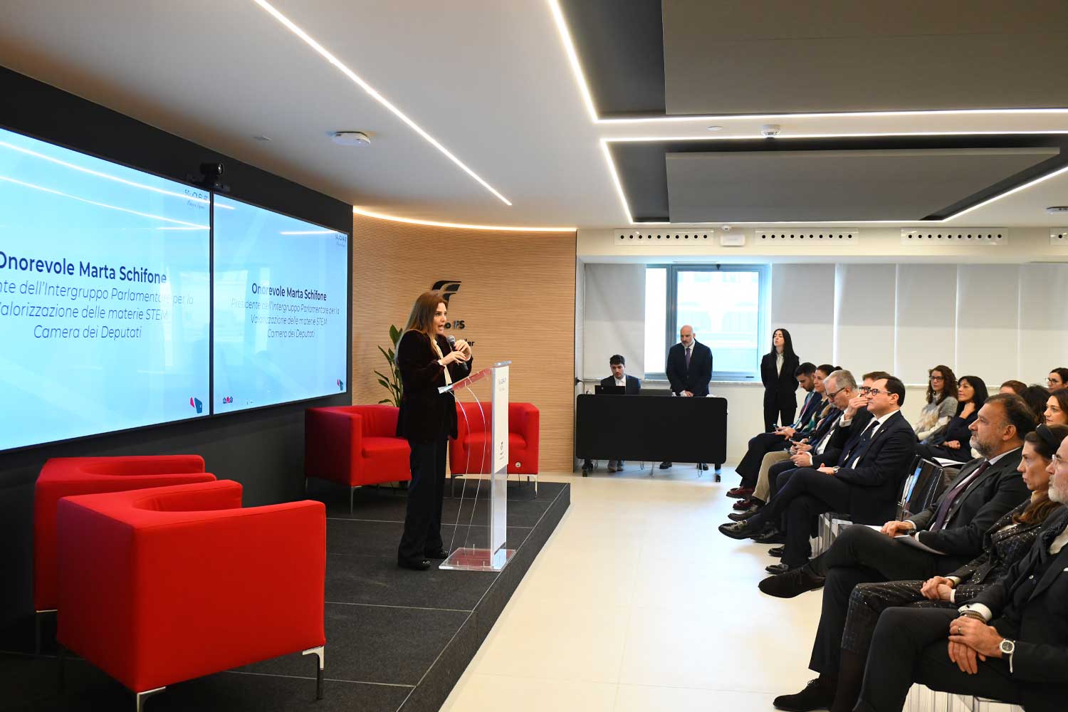 Ad aprire la giornata è stato l’intervento di Tommaso Tanzilli , Presidente di Ferrovie dello Stato Italiane: «Oggi non siamo solo un player ferroviario, ma un Gruppo che integra infrastrutture, digitalizzazione, sostenibilità e tecnologia avanzata. Questo rende i profili STEM centrali per la crescita del nostro Gruppo e per il valore che genera sul Paese. Dobbiamo scardinare questa visione chiusa delle discipline scientifiche come materie prettamente maschili che ancora oggi caratterizza la società e possiamo farlo facendoci promotori di sinergie sempre più forti tra aziende, istituzioni e mondo accademico».