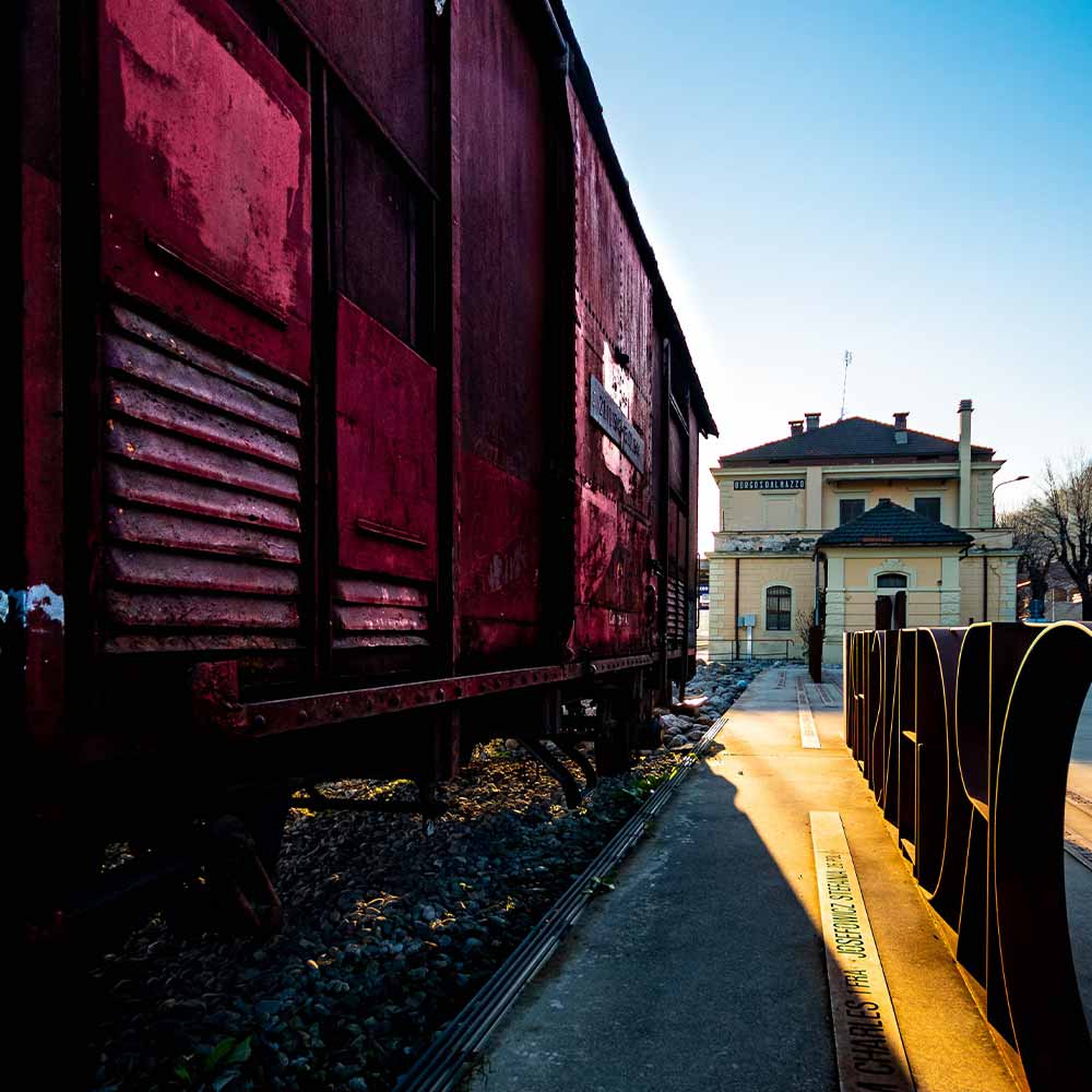 Il 21 novembre 1943, dalla stazione di Borgo San Dalmazzo, in Piemonte, 331 persone - uomini, donne e bambini - vennero fatte salire sui vagoni merci e condotte prima al campo di concentramento di Drancy, a nord di Parigi, e poi ad Auschwitz. Si salvarono in 39. Erano ebrei stranieri, in fuga dalla Francia, richiusi da due mesi nell’ex caserma degli alpini, situata a poche centinaia di metri dalla stazione, scelta come luogo al servizio del disegno epurativo nazista assieme a Fossoli, Trieste e Bolzano. Il 15 febbraio 1944, altri 26 ebrei, prevalentemente italiani, furono deportati da questa stazione, diretti a Fossoli di Carpi, da dove furono poi inviati ad Auschwitz e Buchenwald. Solo due di loro sopravvissero. Il Memoriale della Deportazione, nel piazzale esterno della stazione, riassume tutto questo in un’installazione dal forte impatto visivo.