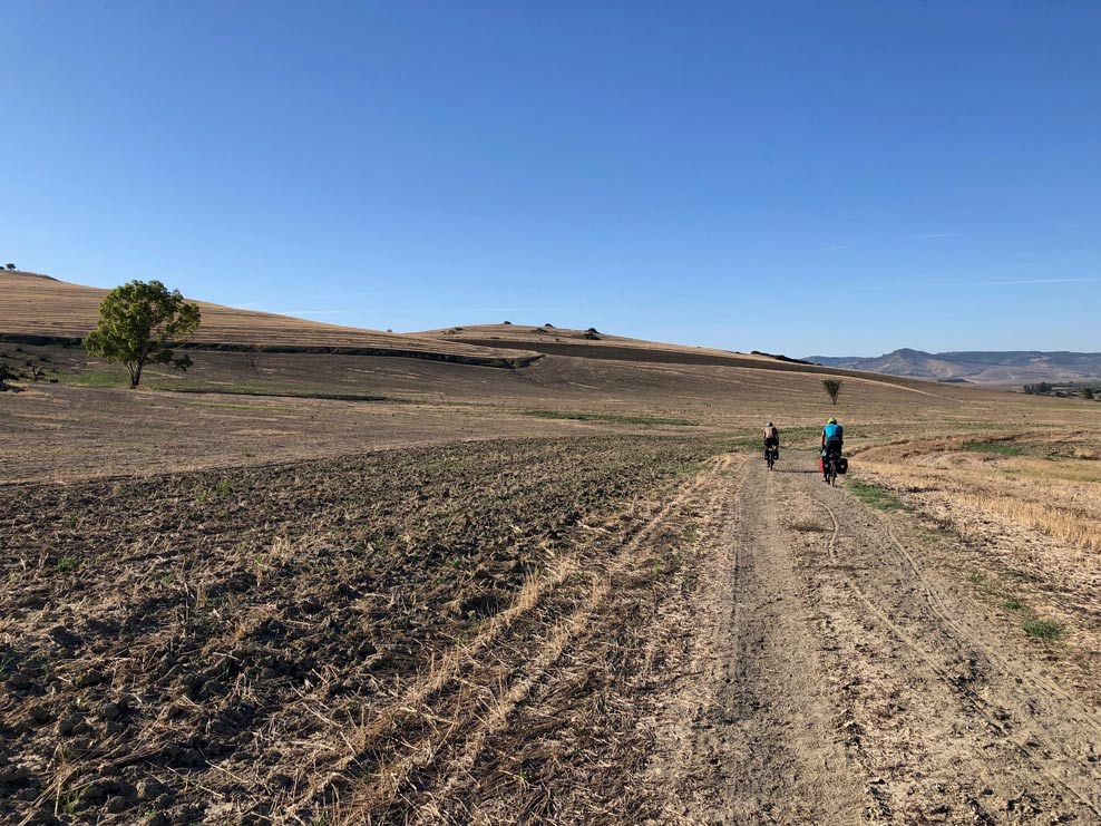 Tappa dai diversi volti, lunga (circa 120 km, 800m di dislivello) e resa faticosa da un forte vento contrario. In compenso abbiamo evitato del tutto la SS16, è lunedì e sarebbe stata percorsa da molti camion. Il primo volto è di una bellezza aspra, un continuo saliscendi tra campi arati. Si arriva al bel paesino di Chieuti, da dove in discesa si raggiunge Lesina, affacciata sull’omonimo lago.